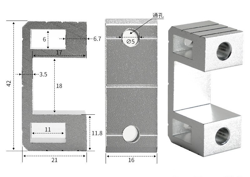U образный одинарный слот16х42